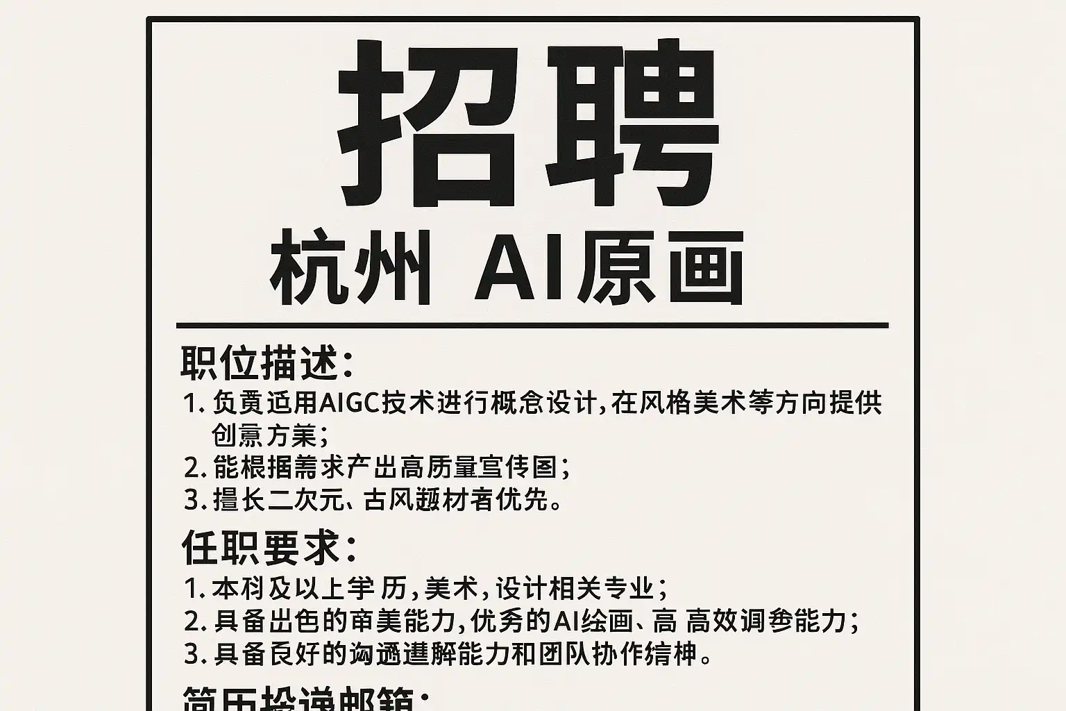 - 要求“AI工具实战”的比例上升,尤其是“能用SD复刻与风格稳定化”的岗位。