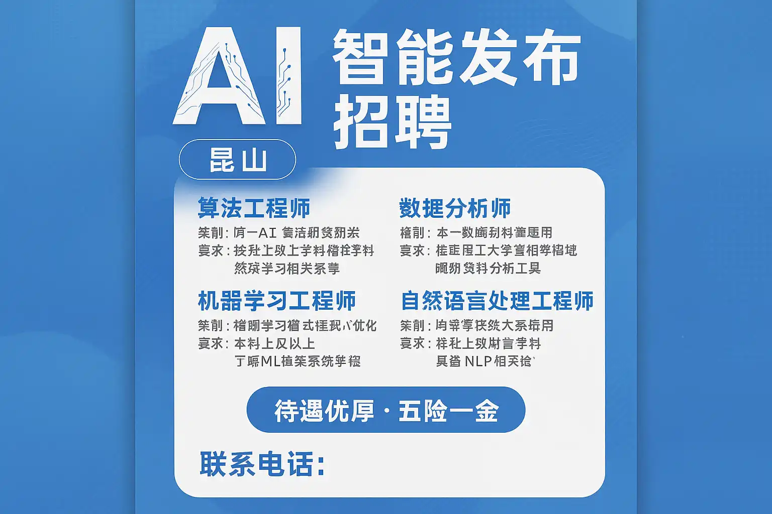- 利用社交媒体和专业社区:关注昆山AI招聘相关公众号、知乎等平台,获取最新招聘动态。