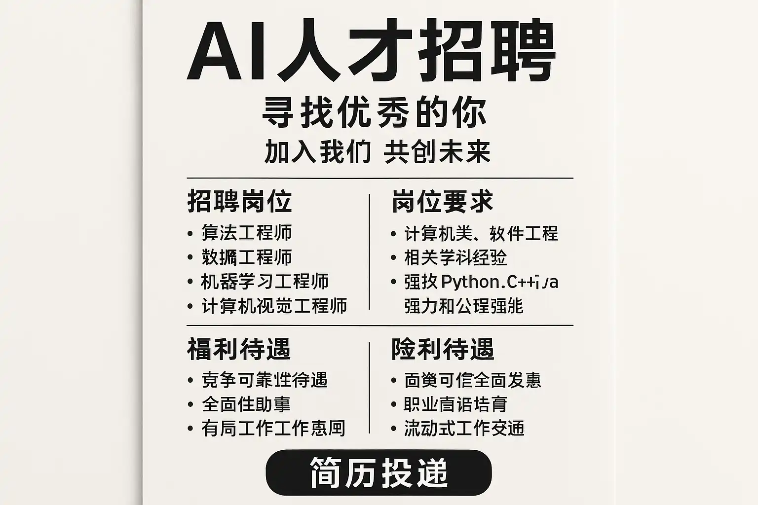 - 投递简历+项目/论文/GitHub链接,邮件标题“ML工程师-姓名-城市”。