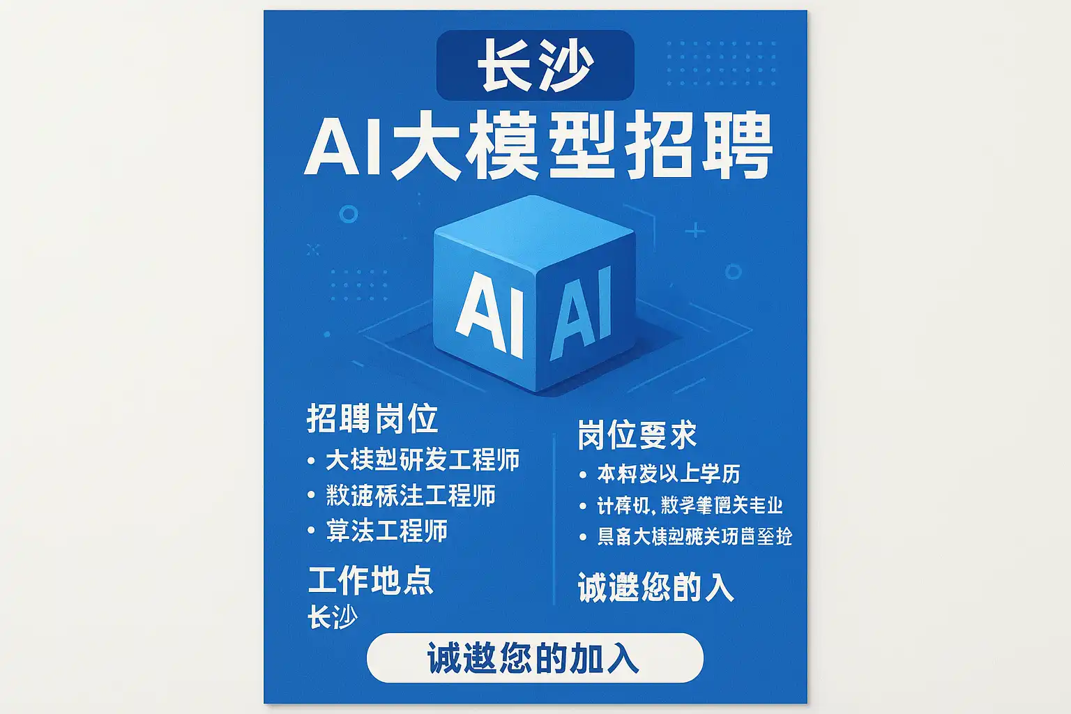 长沙AI大模型招聘最新信息主要涵盖以下几个方面: