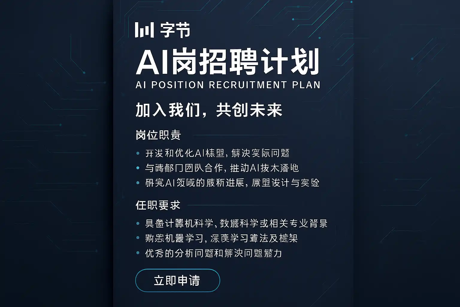 我最近注意到字节跳动在招聘AI岗位,但信息比较零散,不知道最新的招聘计划都包括哪些内容,想了解具体的动态和时间节点。