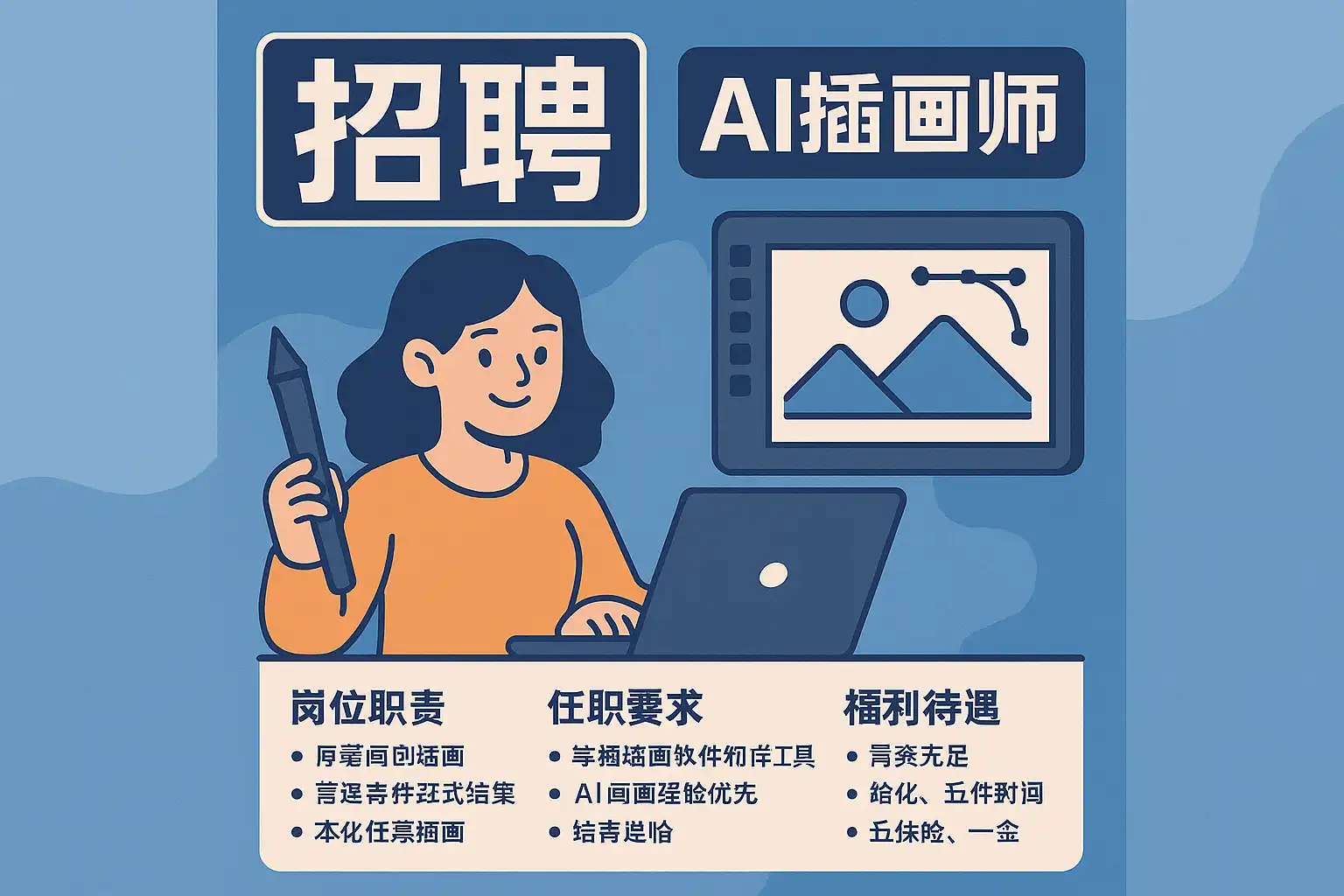 根据2024年行业报告,招聘AI插画师的市场需求持续增长,主要表现为: