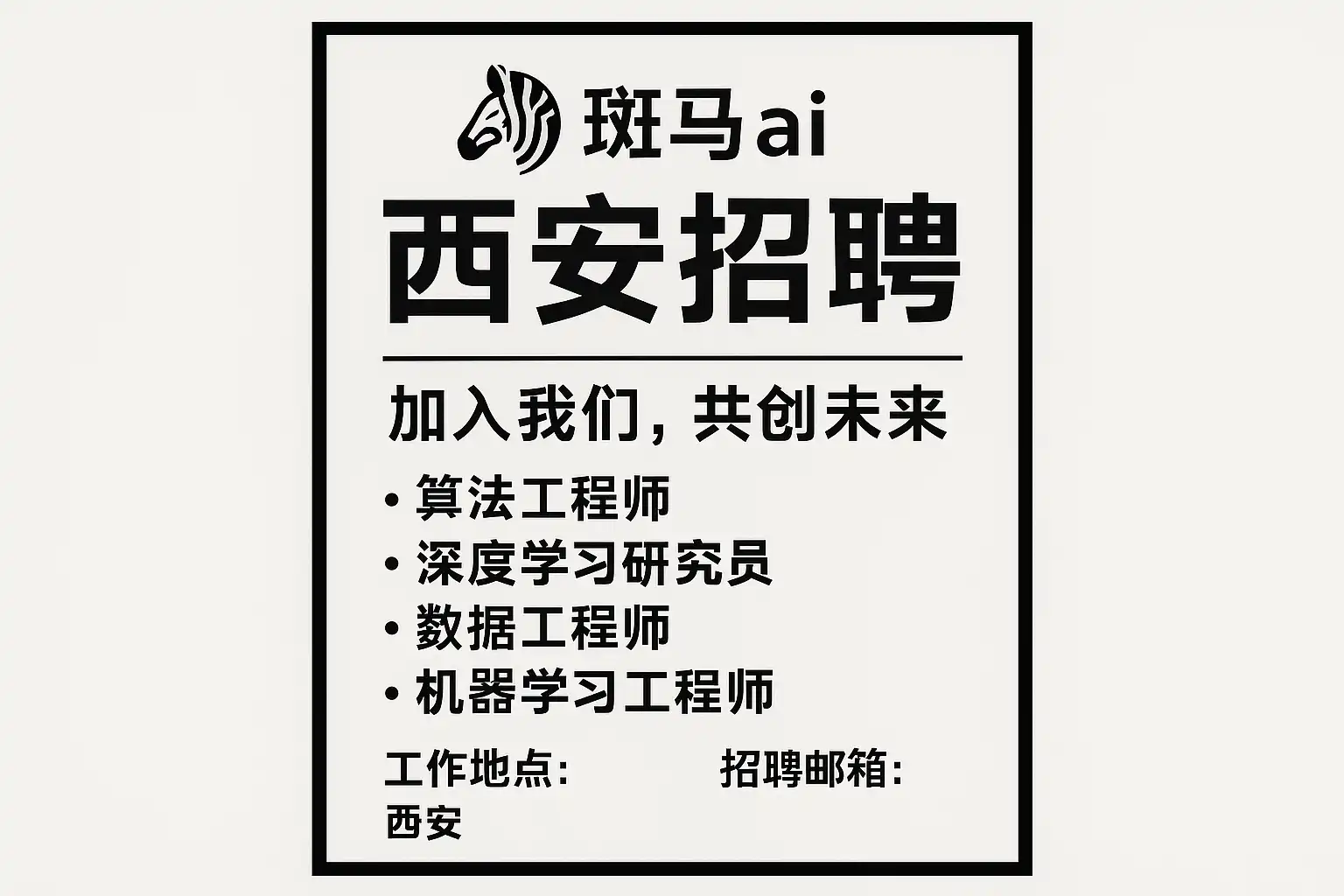 斑马AI公司西安招聘最新信息主要包括以下几点: