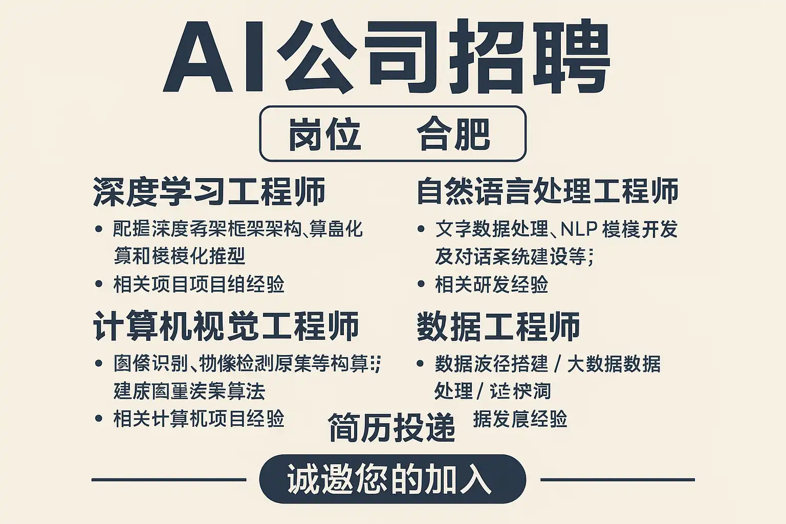 AI公司招聘岗位合肥最新信息,合肥AI公司招聘岗位有哪些?