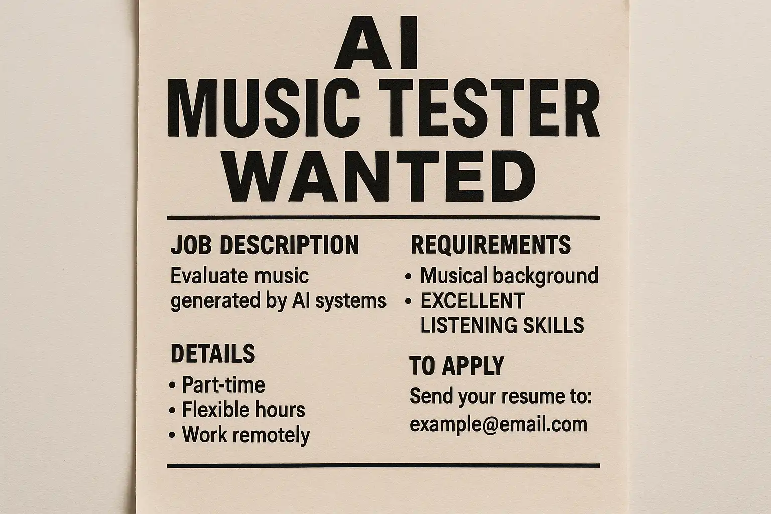 - 岗位:AI 音乐 测试 / MIR 评测 / Audio QA / 听感评测 / 语音歌声评测 / 生成式音乐 质量