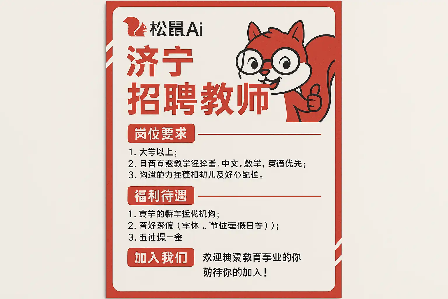 济宁松鼠AI招聘教师的具体岗位要求有哪些?