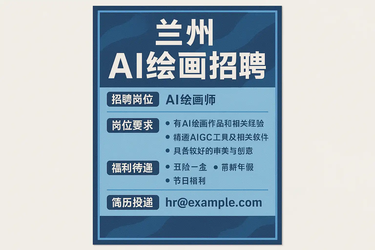补充说明:薪酬与需求会随季节与项目波动,实时以平台发布为准;本文提供的是可落地的方法论与交付标准,助你在兰州AI绘画岗位竞争中快速获得面试与Offer。