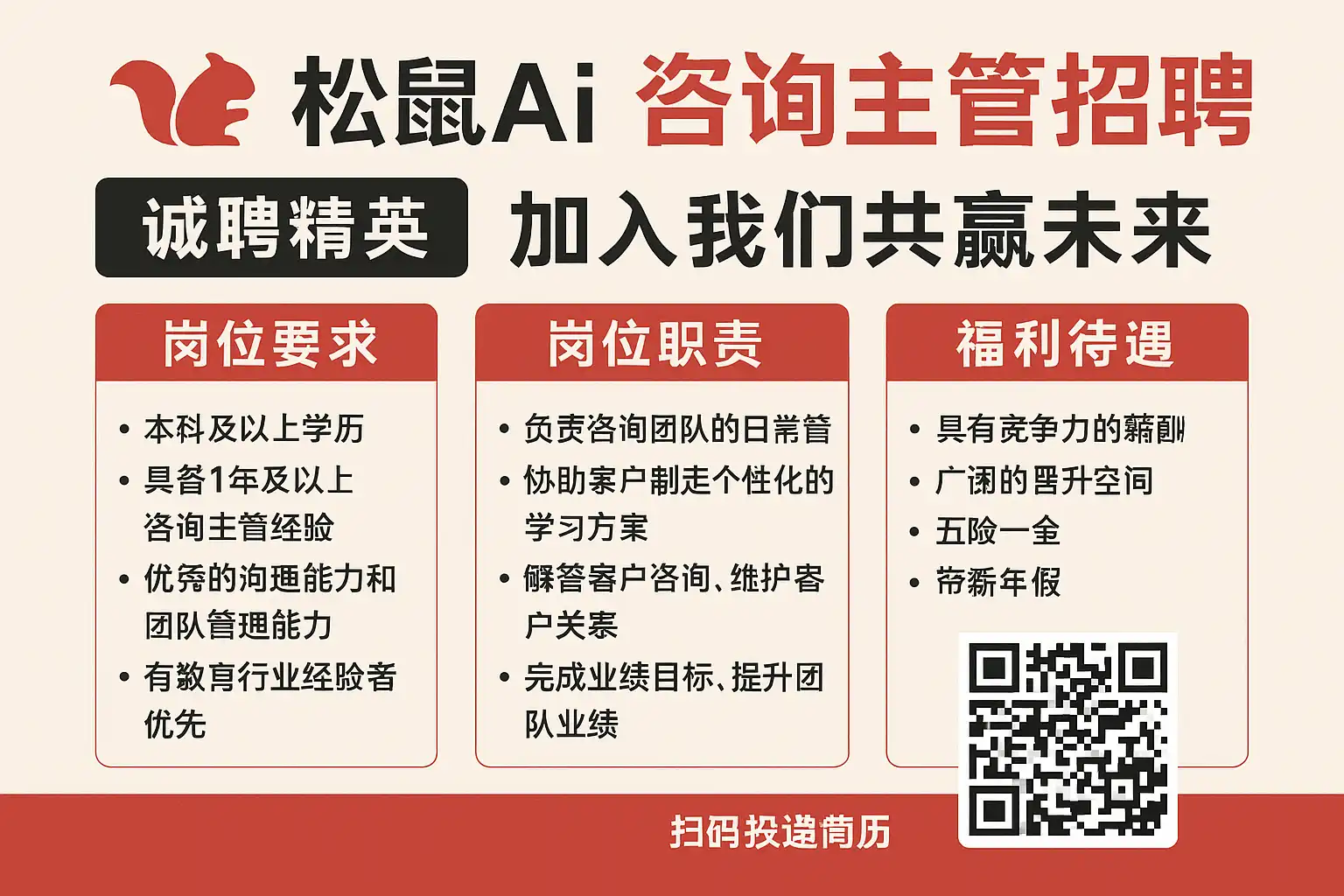 《松鼠AI咨询主管招聘最新职位,如何快速应聘成功?》