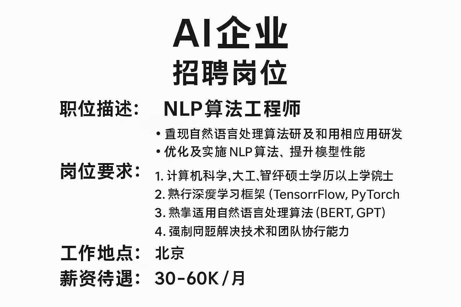 | 数据科学家 | 30-60 | 工作经验、项目成果、行业领域 |