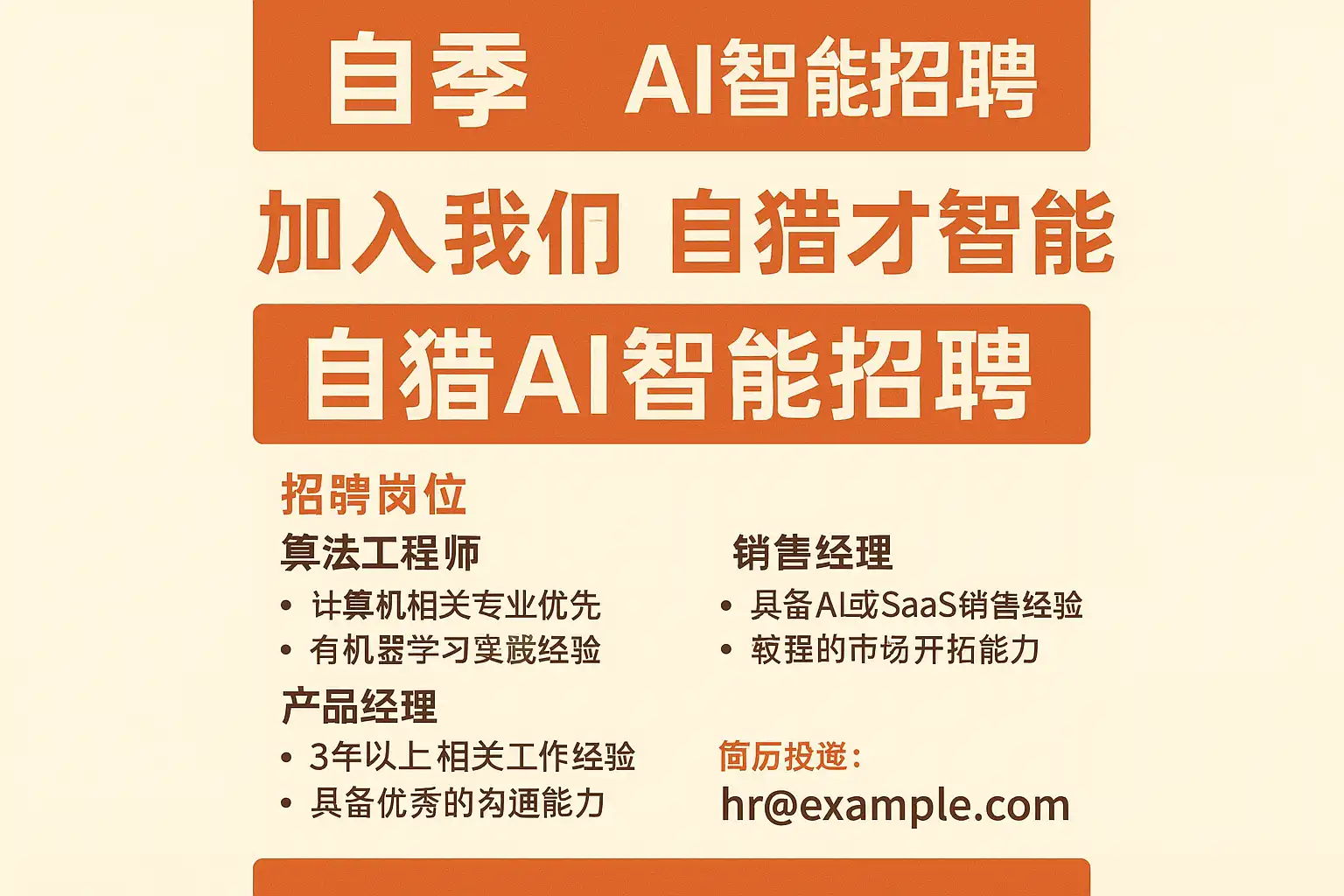 | 自猎AI | 搜寻与初筛快、成本可控、可复用 | 对非常规画像与创意能力识别有限 | 中级技术/运营/销售/客服/职能 |