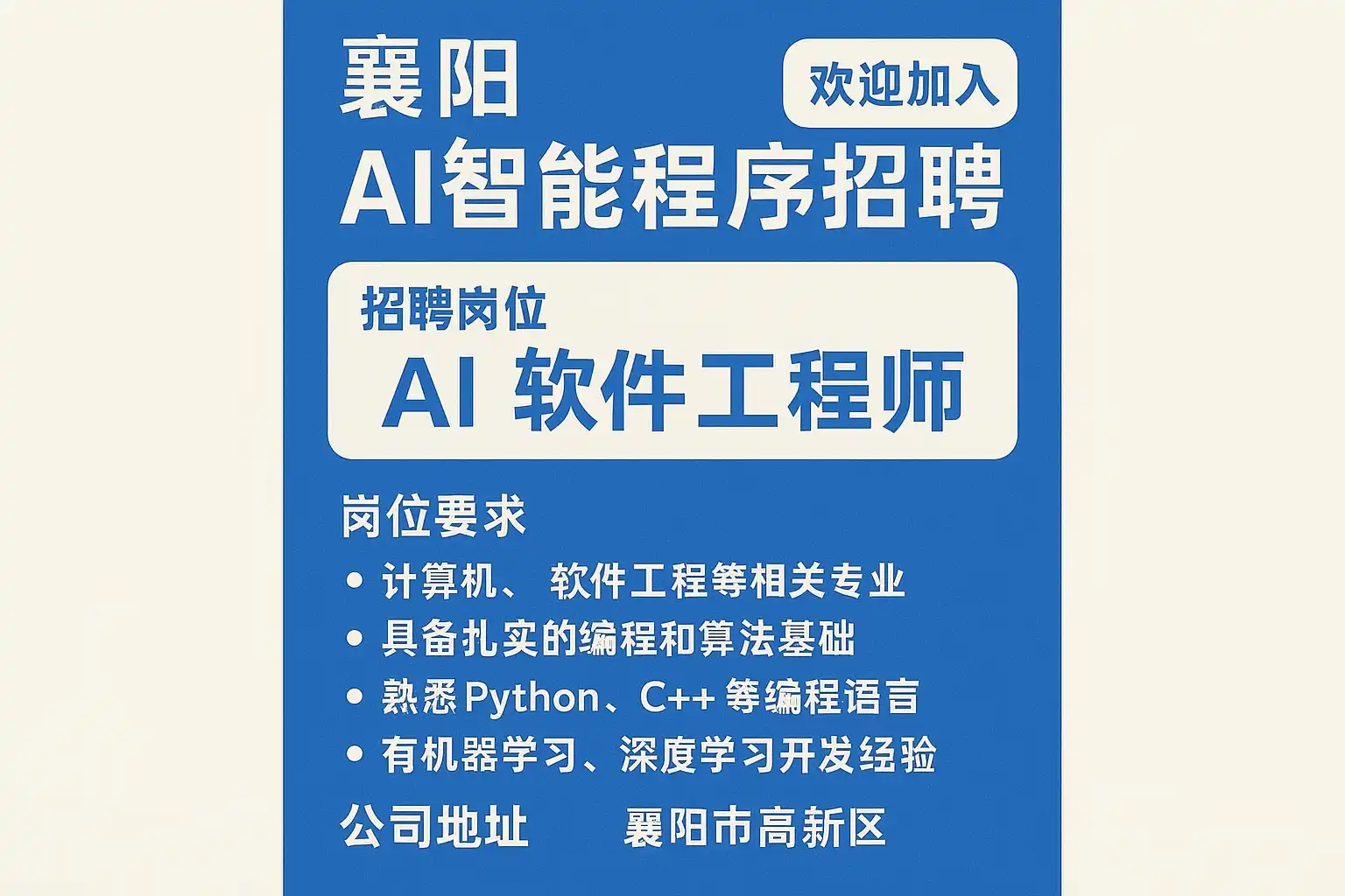 襄阳AI智能程序招聘最新信息主要通过以下渠道发布: