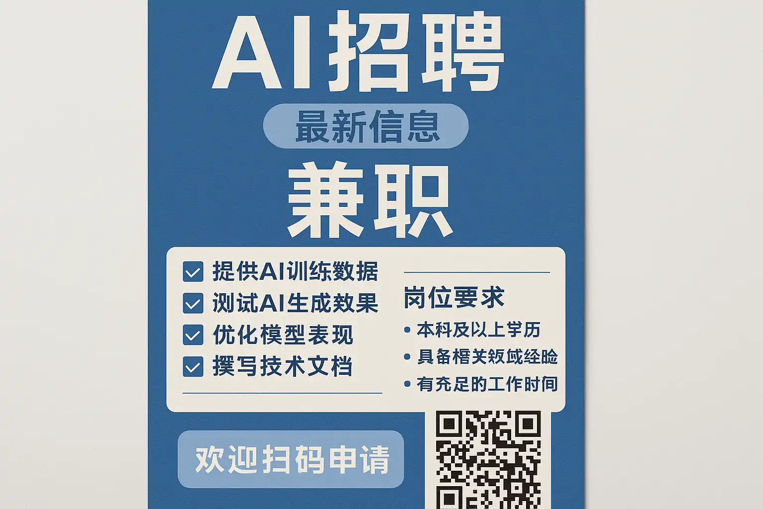 - 结论:AI招聘兼职机会总体充沛,但呈现“低门槛易起量—高门槛高回报”的分层结构。核心是定位清晰、样例可复用、流程可量化、合规可落地。