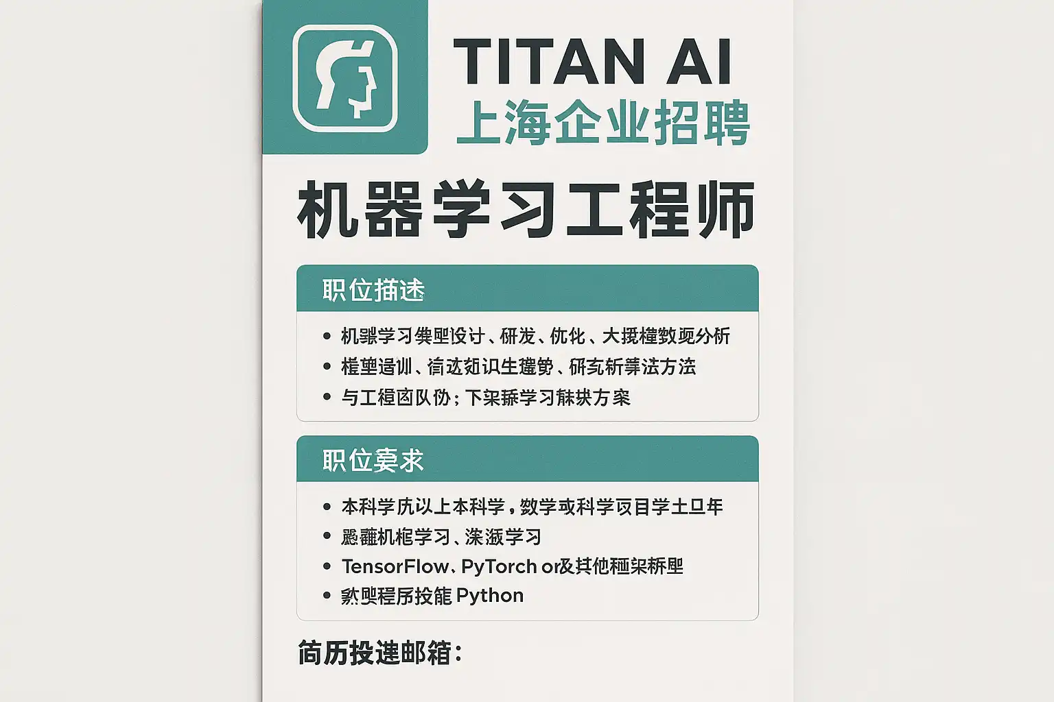 以下为在沪AI企业近阶段高频发布、与泰坦AI业务相匹配的岗位方向及要点(便于快速对号入座与筛选)。