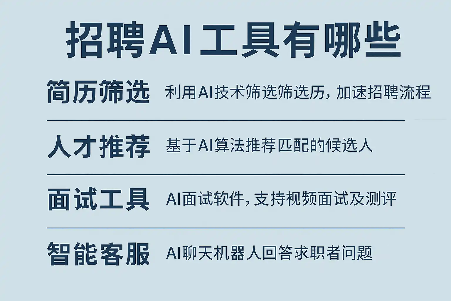 招聘AI工具主要分为简历筛选工具、面试辅助工具、候选人匹配工具和招聘数据分析工具。简历筛选工具利用自然语言处理(NLP)技术自动筛选简历,节约80%以上的人工筛选时间;面试辅助工具通过视频面试分析候选人的情绪和回答质量,提升面试效果;候选人匹配工具利用机器学习算法,根据职位需求和候选人特征进行精准匹配,匹配准确率可达90%以上;数据分析工具则帮助招聘团队监控招聘流程中的关键指标,如入职率和人员流失率,提升招聘决策的科学性。不同招聘场景下选择对应类型的AI工具,可以显著提升招聘效率和质量。
