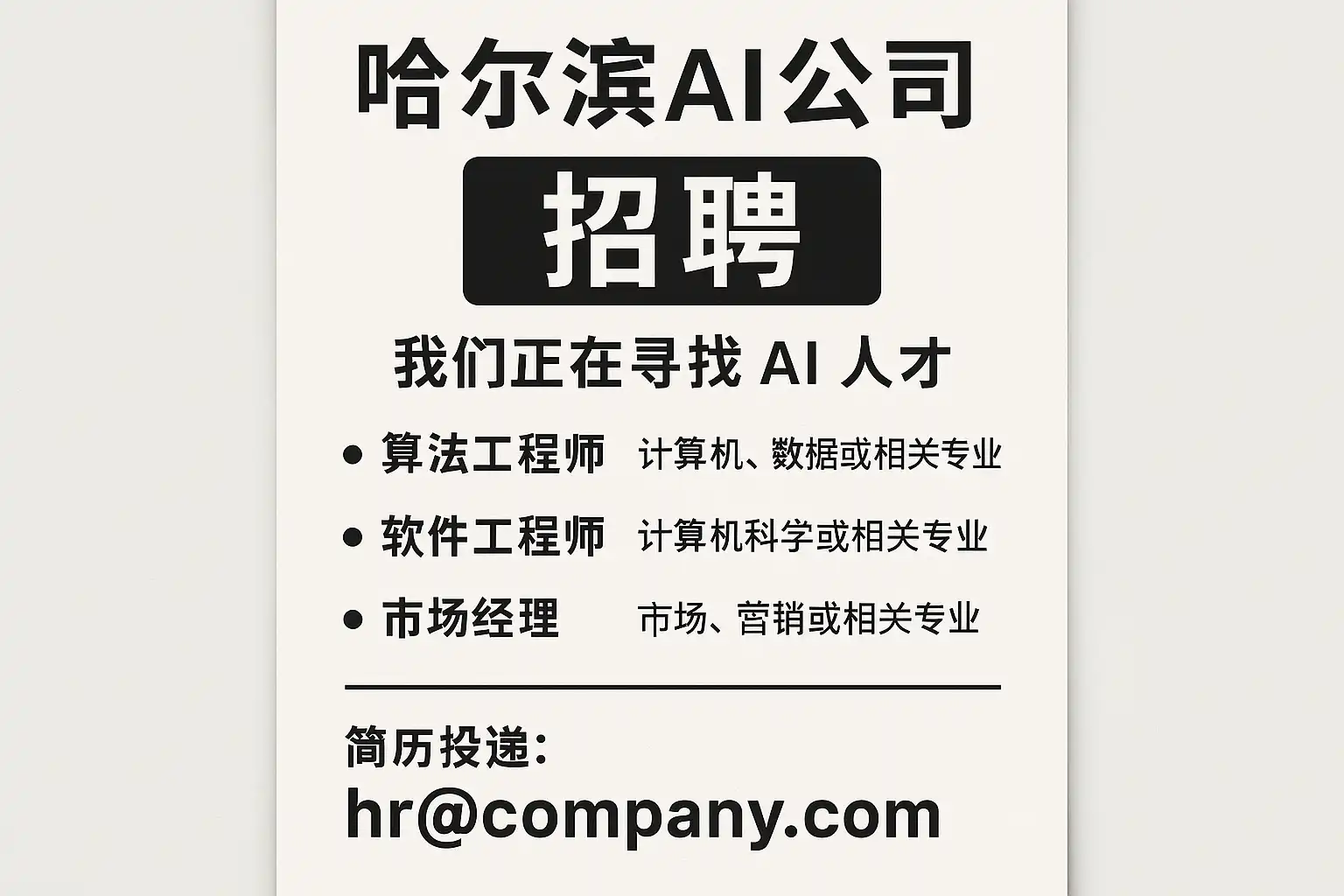 哈尔滨AI公司招聘信息通常包含以下关键内容: