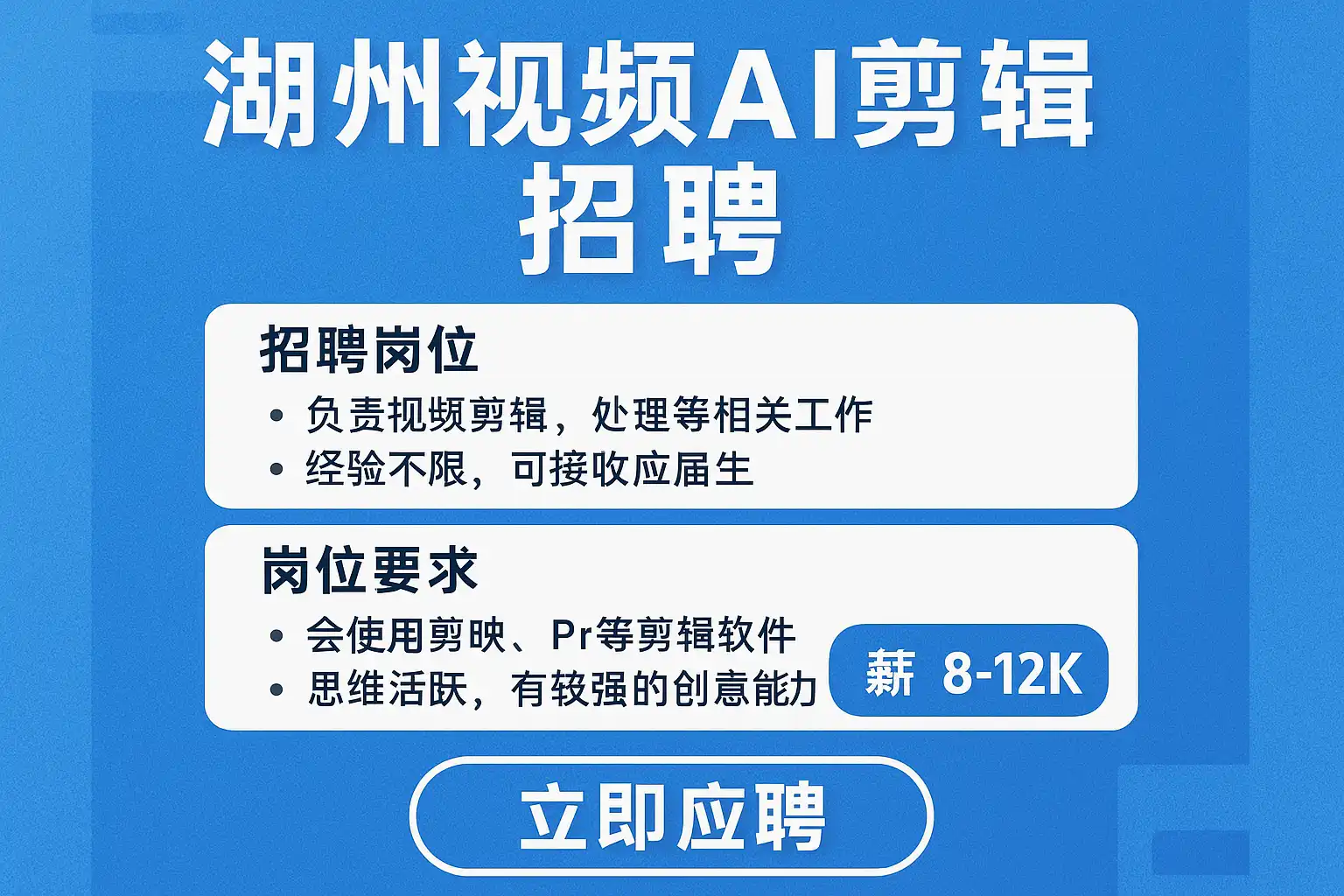 湖州视频AI剪辑招聘最新信息,如何快速找到合适岗位?