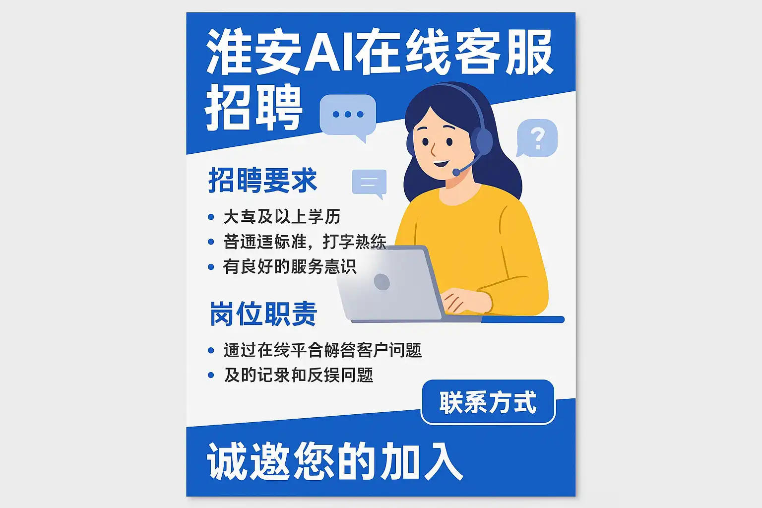 《淮安AI在线客服招聘最新信息,如何快速应聘成功?》