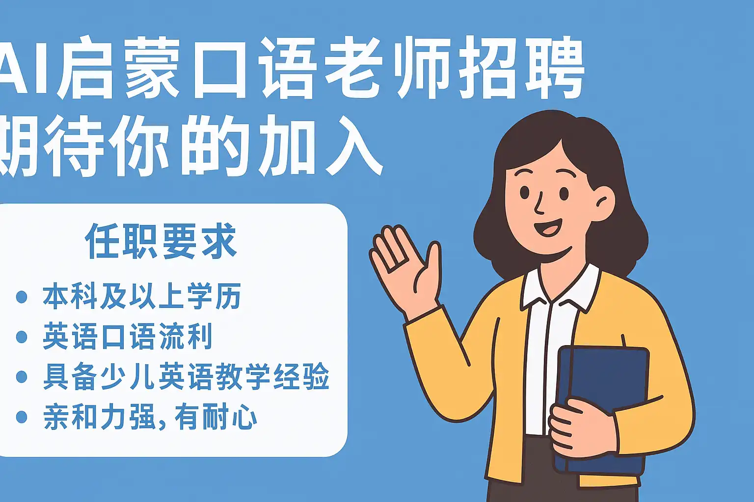 - 加分项:国际少儿英语证书(TEFL/TESOL)、在线教龄2年以上、会制作交互课件(GenAI+H5)。