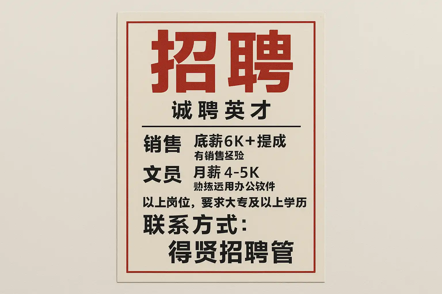 - 动作:AI自动生成JD三版(通用版/精简版/社媒版),并对标竞品岗位,生成关键词黑白名单。