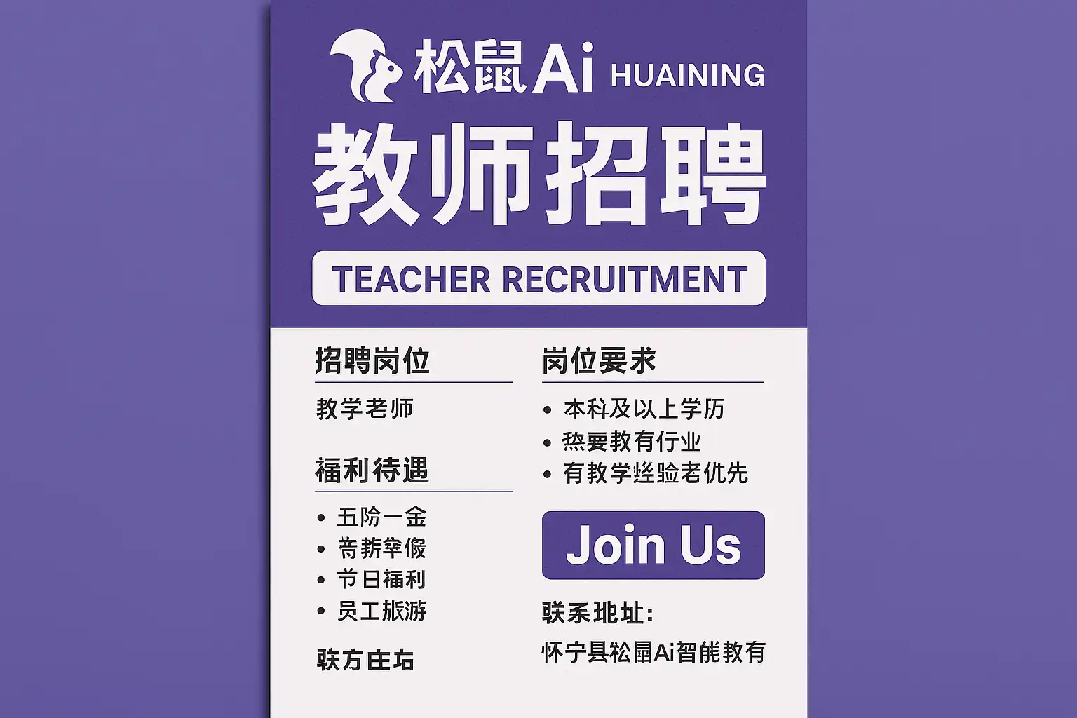 通过多渠道同步关注,可以确保不错过怀宁松鼠AI教师招聘的最佳机会。