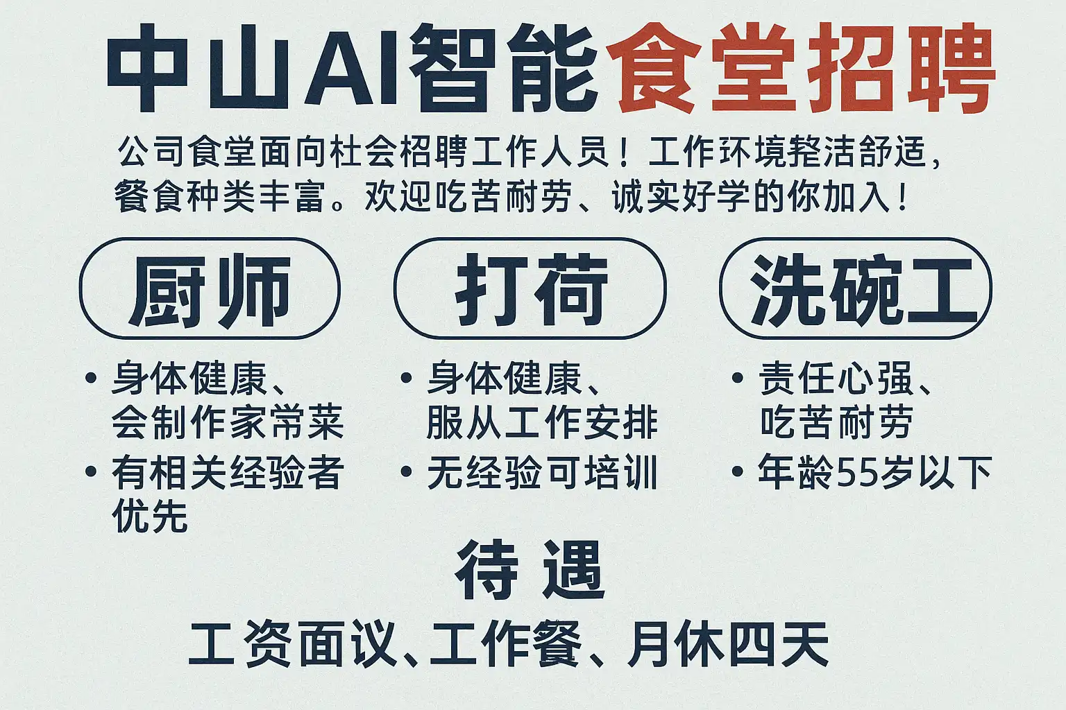 《中山AI智能食堂招聘:最新岗位汇总,中山AI智能食堂招聘靠谱吗?》