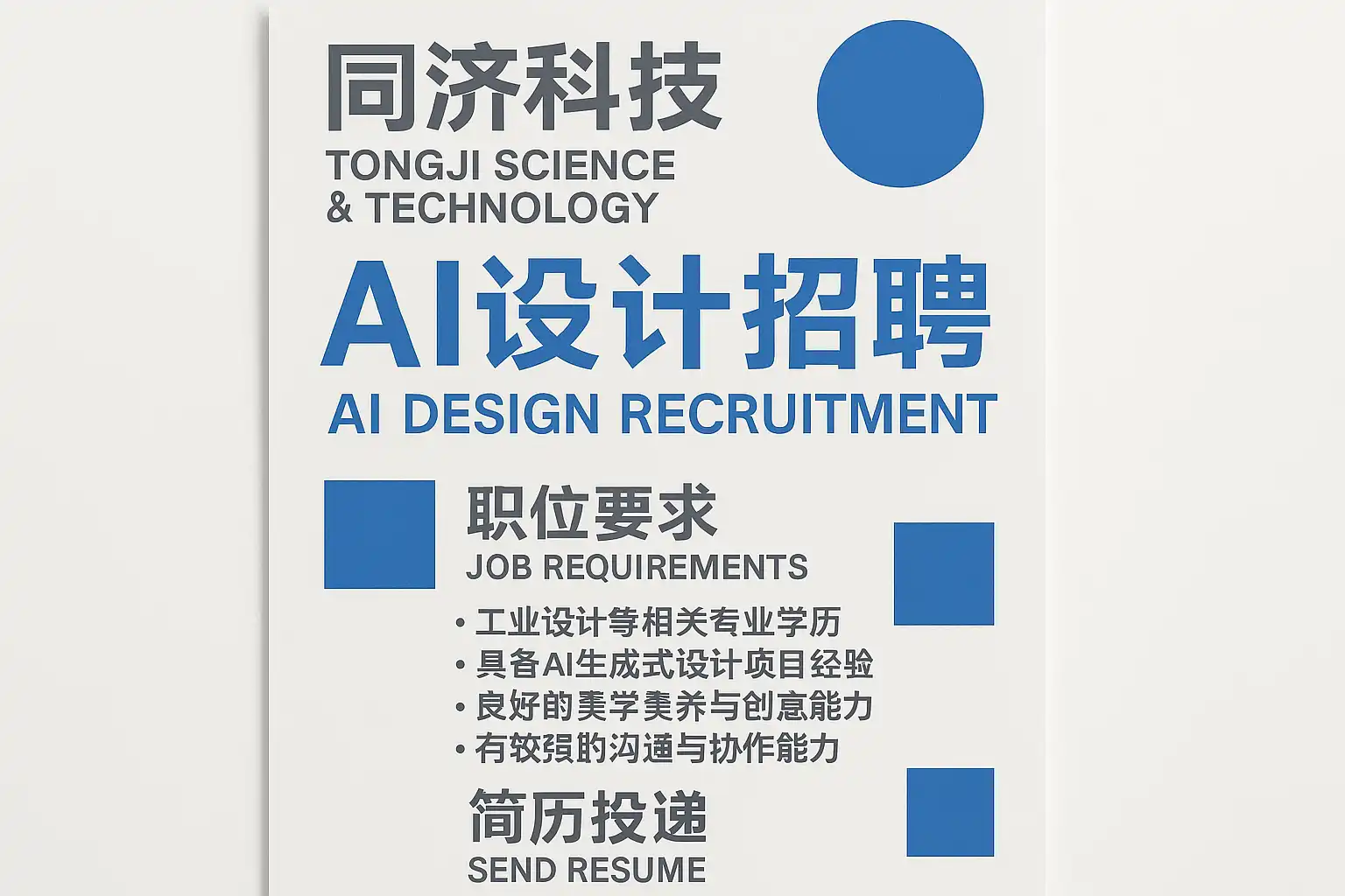 同济科技AI设计招聘的基本要求主要包括: