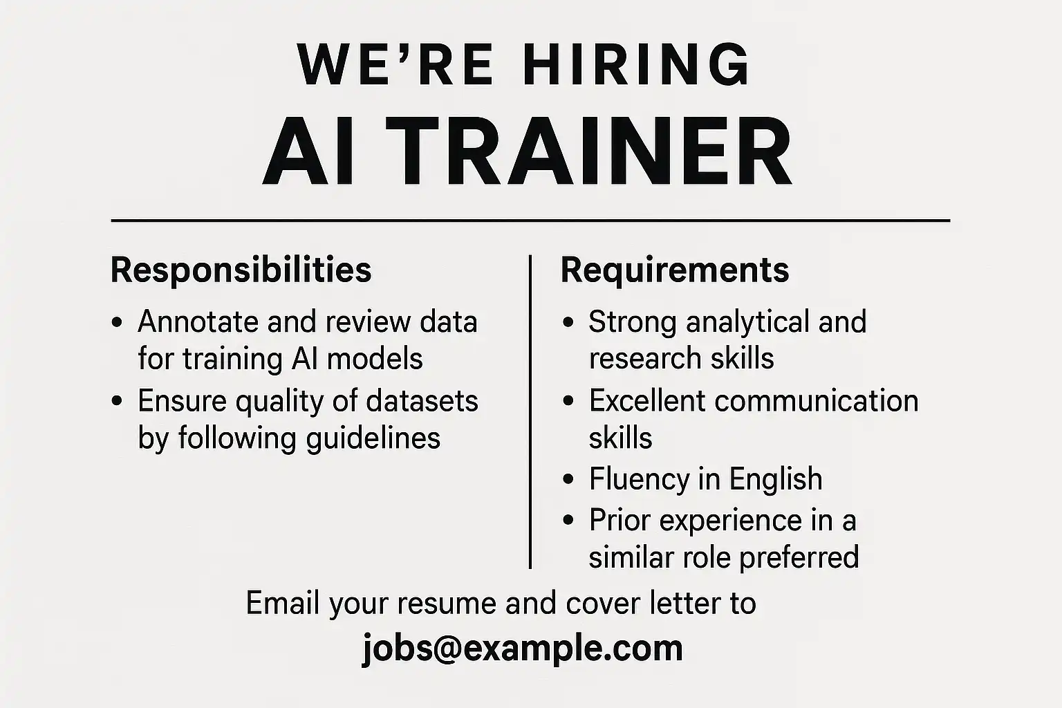 - 英文:AI Trainer|Prompt Engineer|Alignment Engineer|Evaluation|RAG|Data Curator|Red Team|Safety.