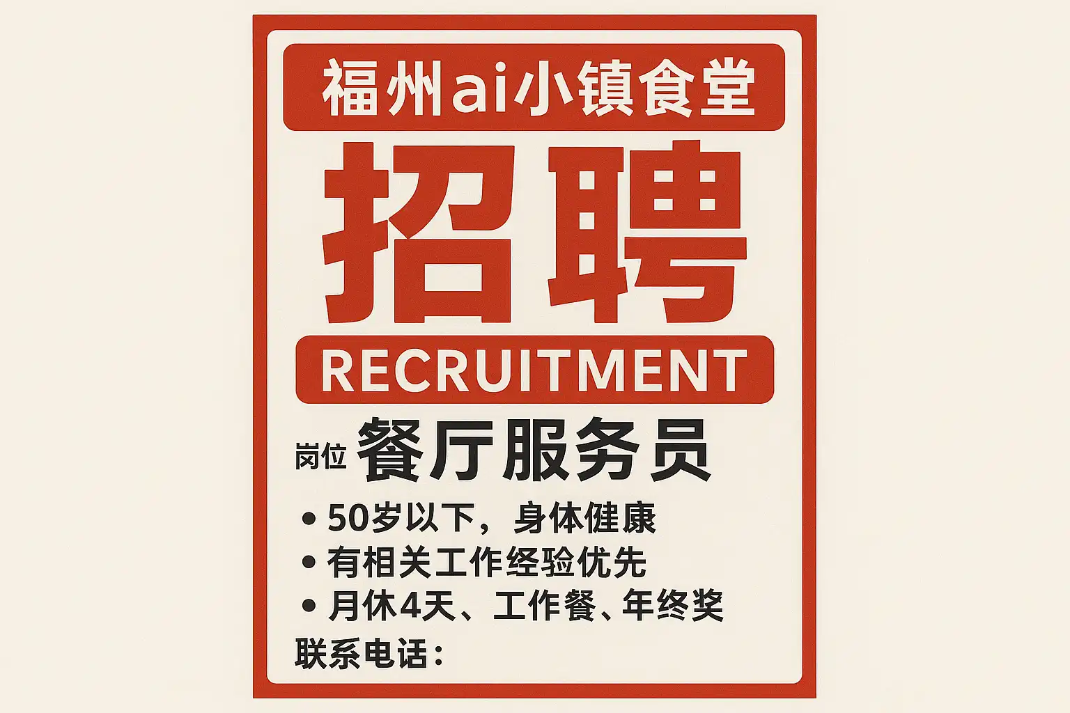 《福州AI小镇食堂招聘最新信息,如何快速应聘成功?》