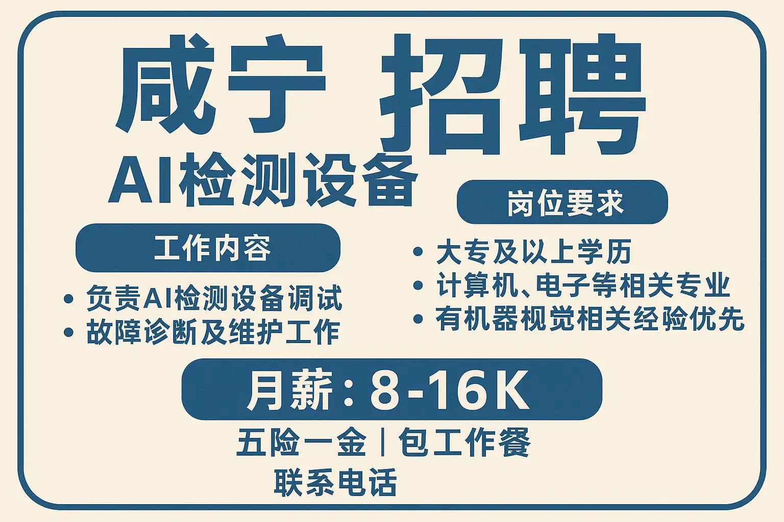 - 关键结论:咸宁AI检测设备岗位看重现场交付与量化成果。快速成功的本质是“高匹配关键词+可验证作品+多渠道投递+高频跟进”。