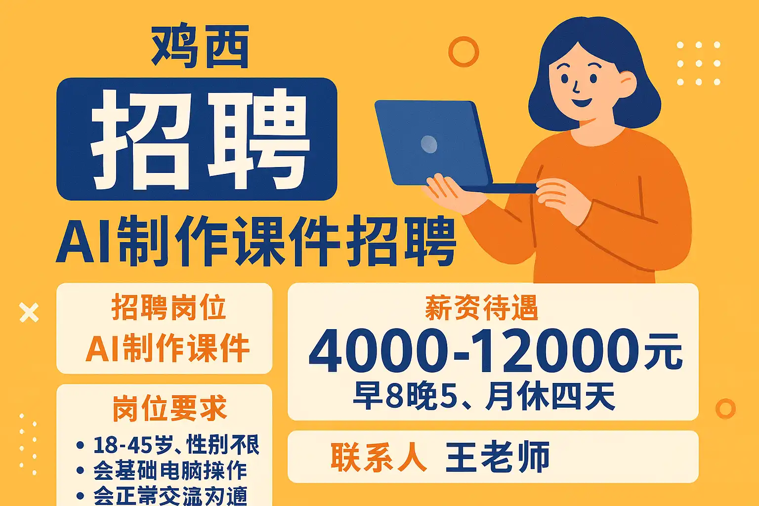 作为一名求职者,我想了解鸡西地区关于AI制作课件的最新招聘信息,方便我及时把握机会。最近这方面的招聘动态具体有哪些?