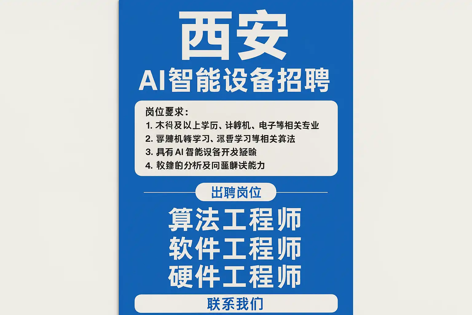 西安AI智能设备招聘最新信息通常涵盖以下内容: