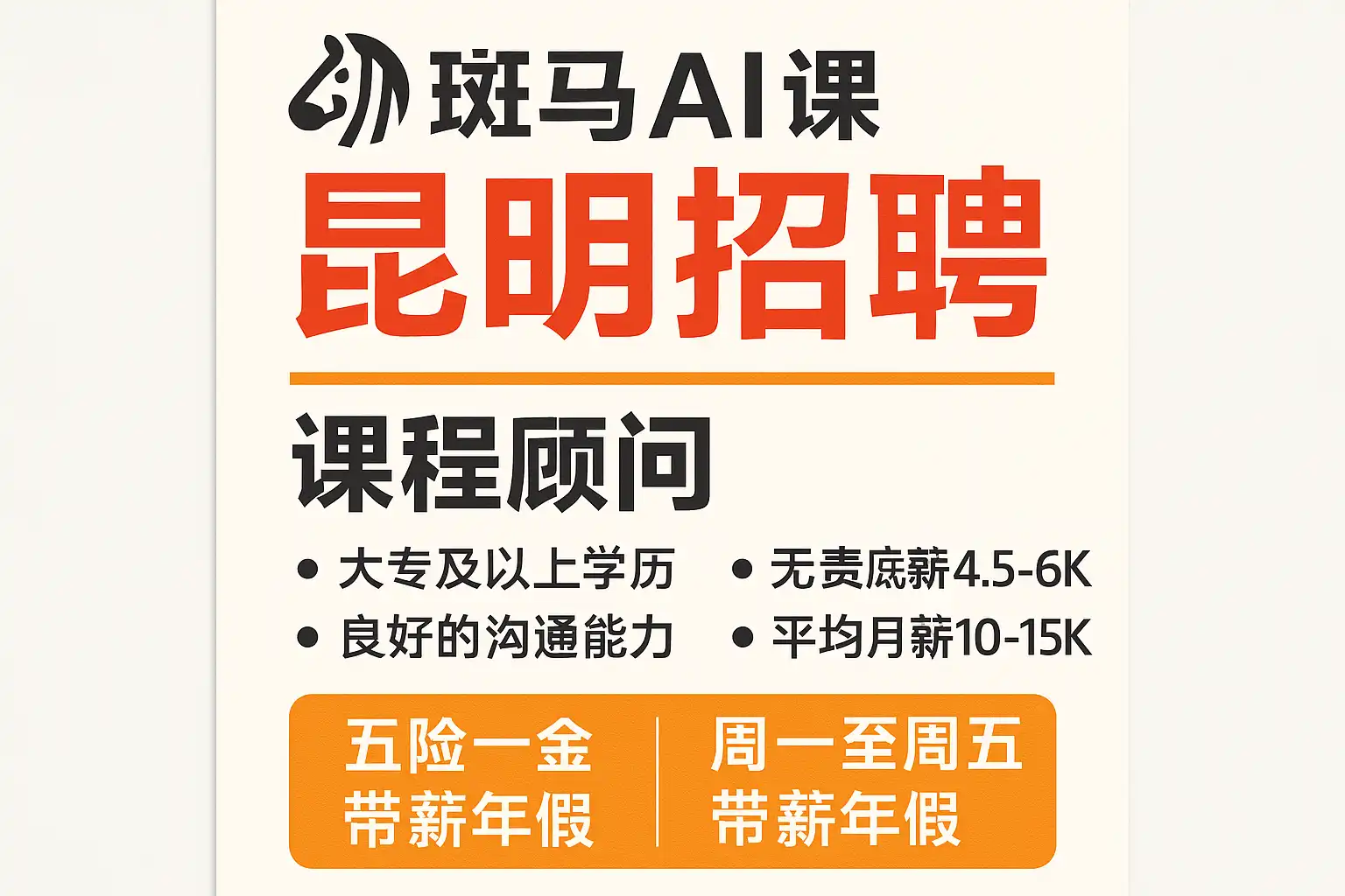 我最近关注斑马AI课昆明的招聘动态,想了解最新的招聘岗位和要求。请问斑马AI课在昆明的招聘信息具体有哪些内容?