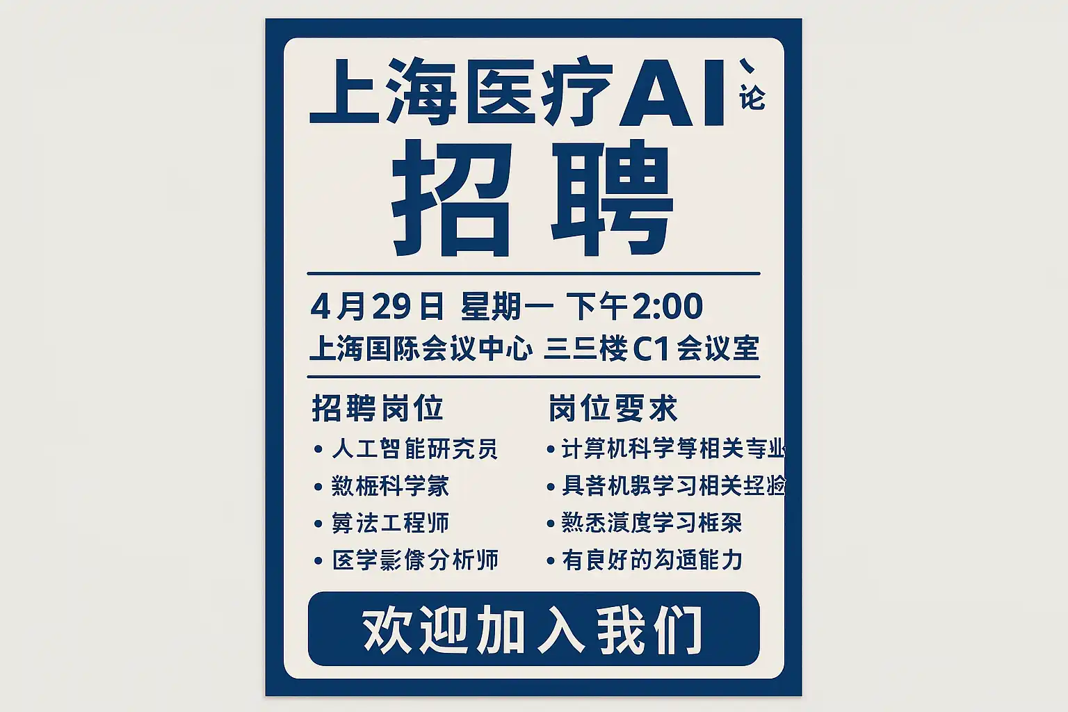 以上岗位均强调医疗与AI技术的结合,申请者需具备相关专业背景和实践经验。招聘信息会定期在上海医疗AI论坛官网和官方微信公众号更新。