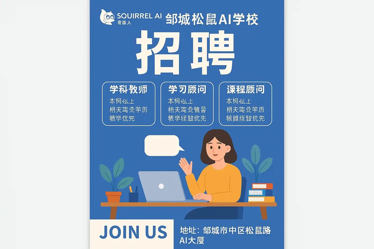 邹城松鼠AI学校最新招聘信息包括: