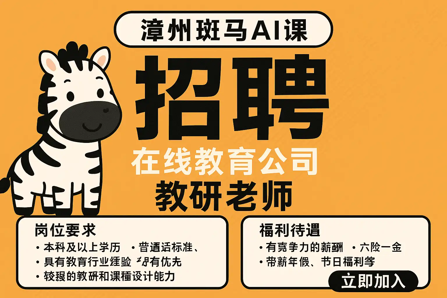 漳州斑马AI课招聘岗位的学历和经验要求如下: