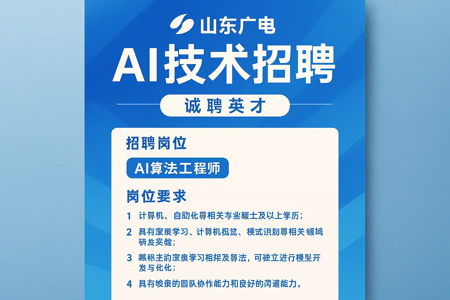 山东广电AI技术岗位对学历和技能有哪些具体要求?