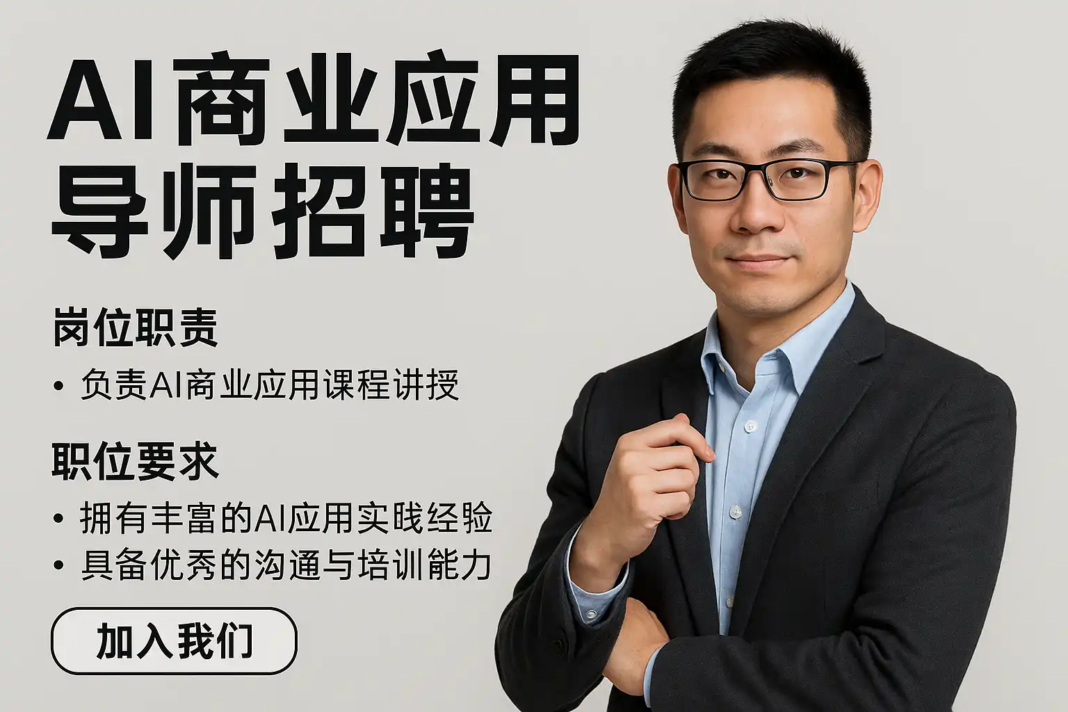 - 职称:AI商业应用导师(行业方向可加注:零售/制造/教育等)