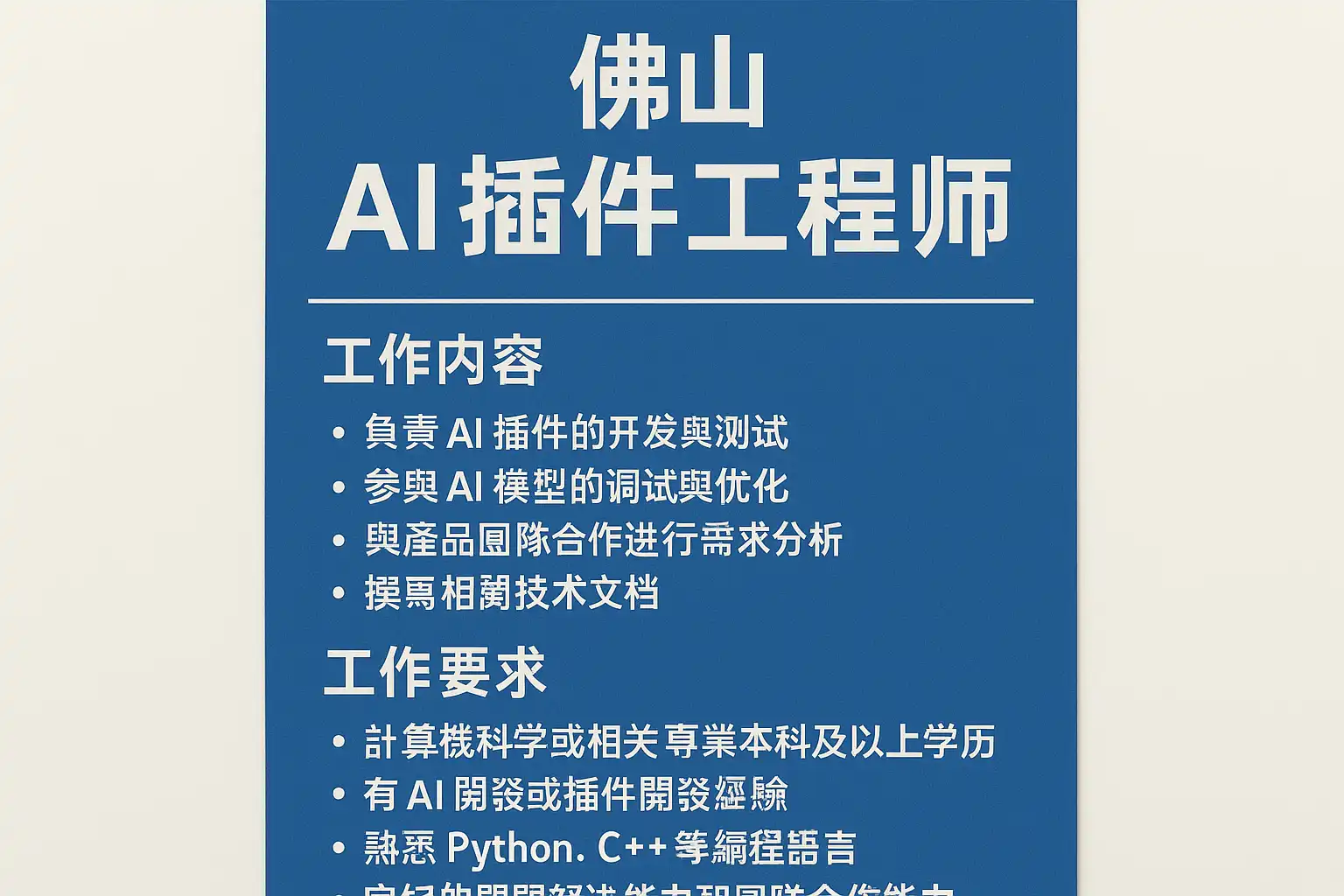 我最近在找佛山地区关于AI插件开发的工作,但对当前最新招聘岗位不是很了解。能否详细介绍一下佛山AI插件相关职位的最新招聘信息?