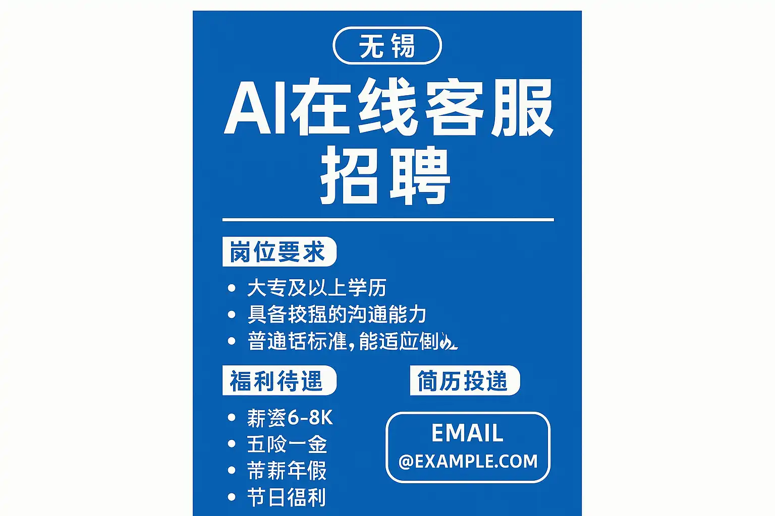 《无锡AI在线客服招聘最新信息,无锡AI在线客服岗位有哪些?》