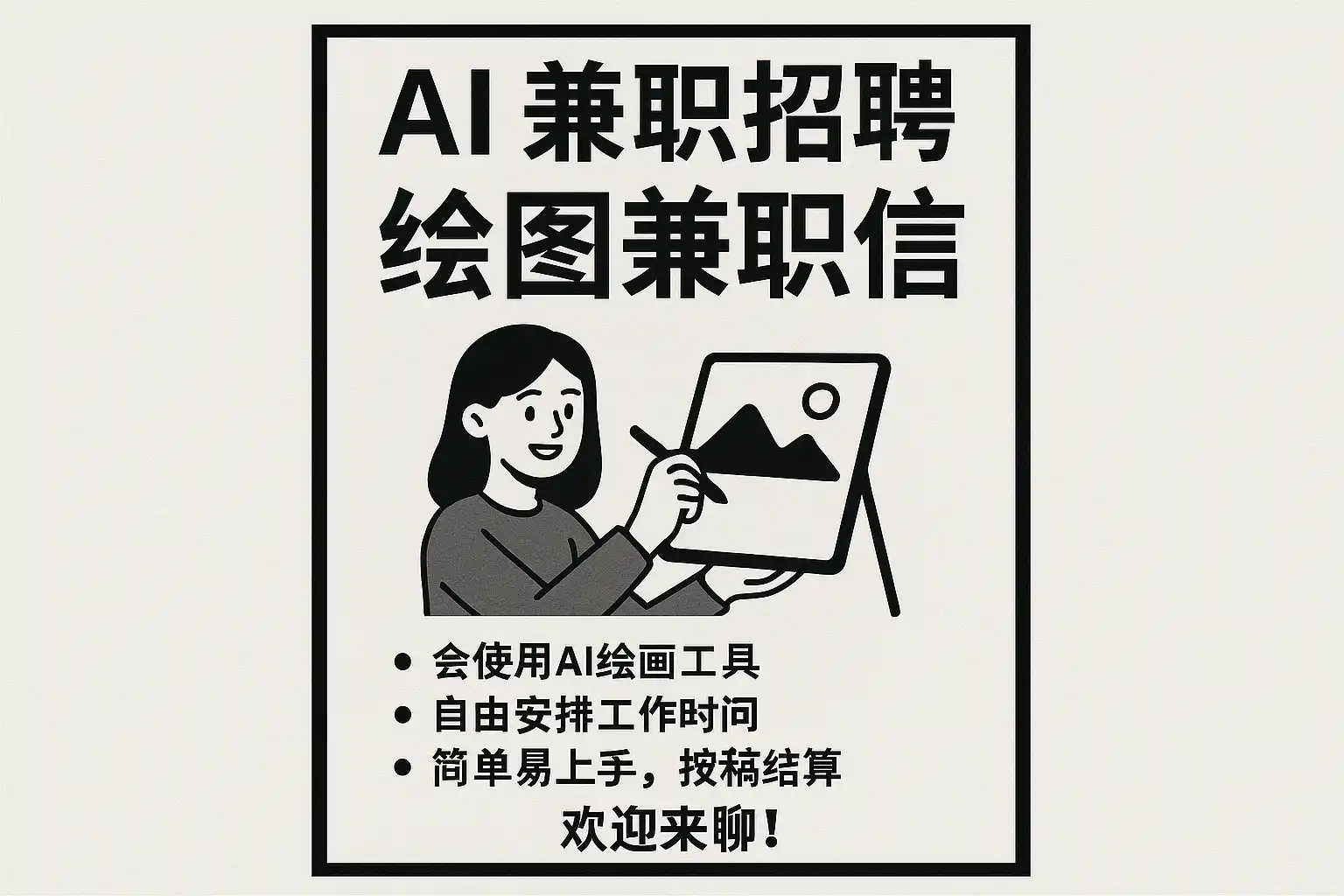 - 专业招聘网站:BOSS直聘、智联招聘、拉勾网,均设有“画图AI兼职”关键词筛选。