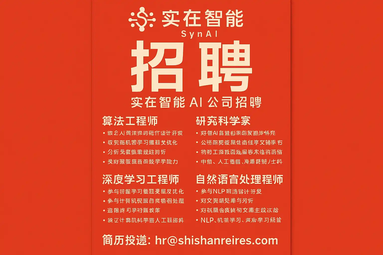 - 专业招聘平台:如智联招聘、拉勾网等,实在智能AI公司会同步更新岗位。