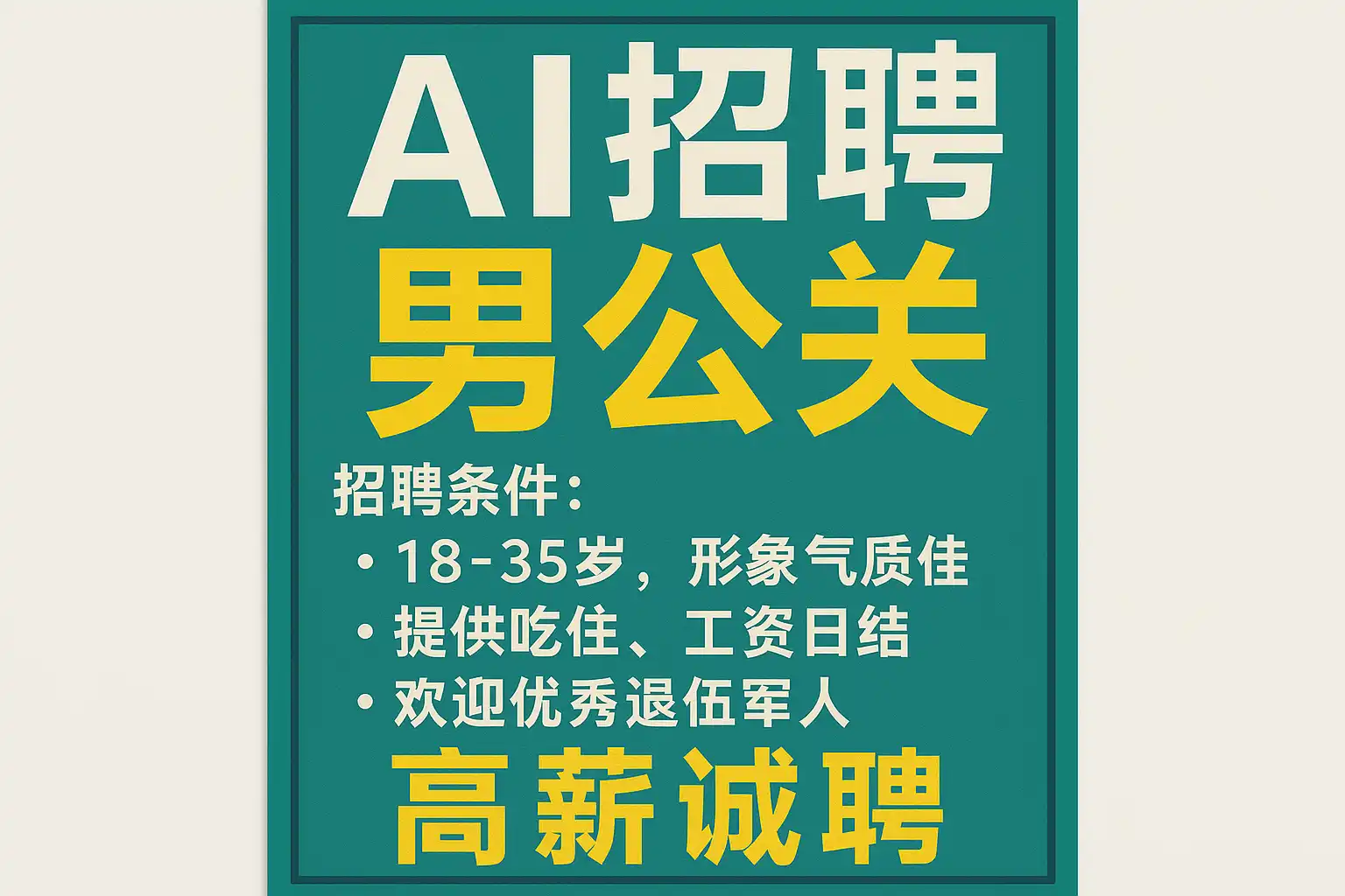 - 避免娱乐服务类“男公关”信息:与企业PR不同,存在合规与安全风险