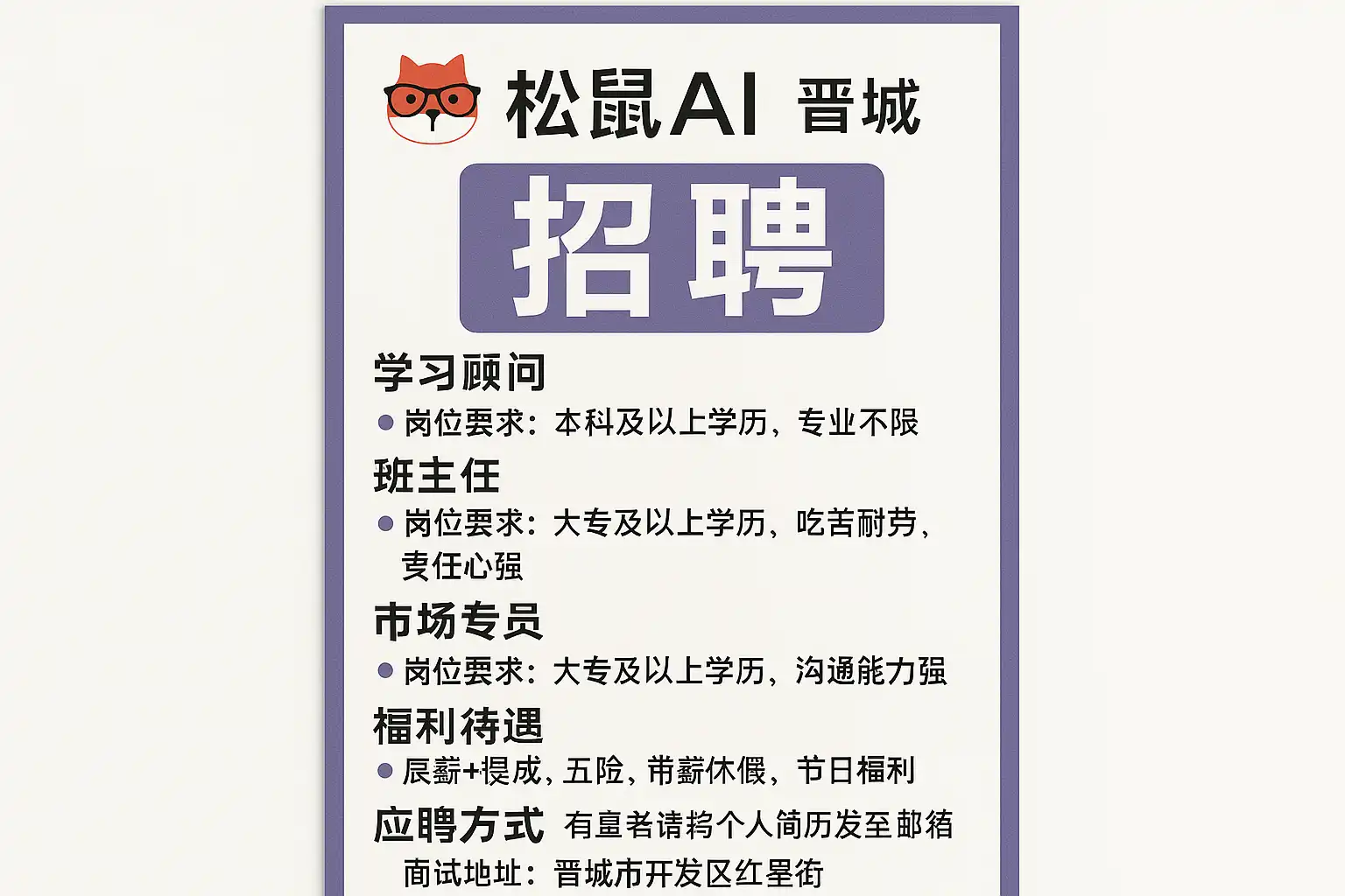晋城松鼠AI招聘的薪资待遇如何?
