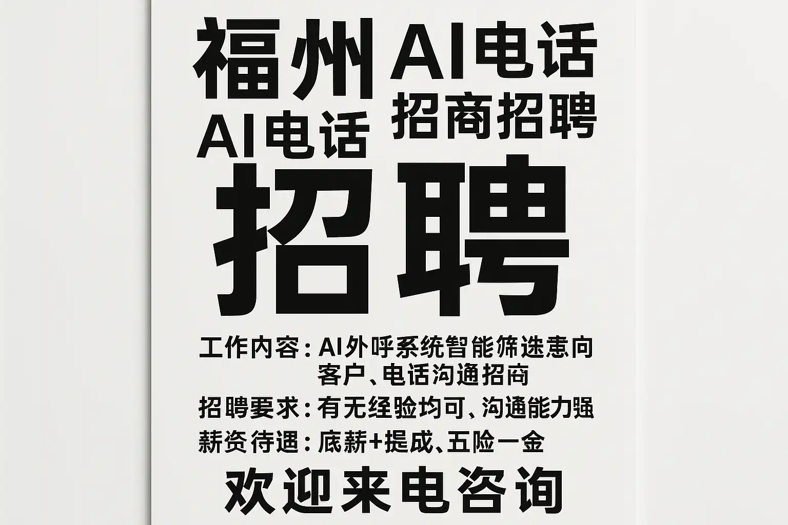 - 职位:AI电话招商专员(福州)