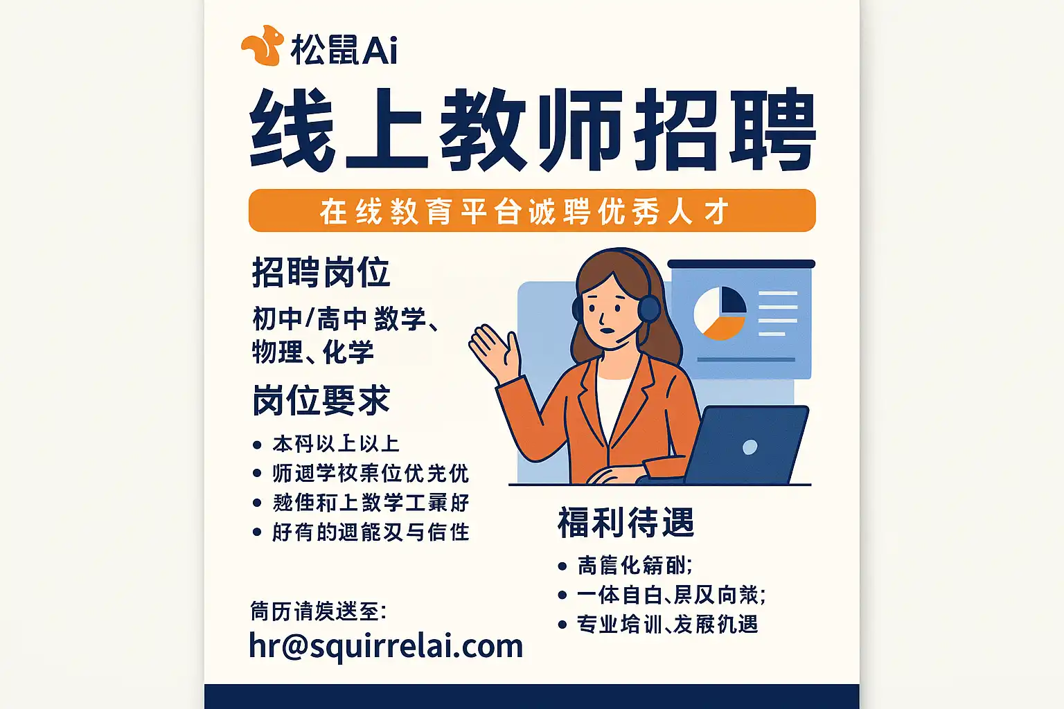我最近听说松鼠Ai在招聘线上教师,但具体的招聘信息不太清楚。想了解最新的岗位需求、招聘条件以及报名流程,方便我有针对性地准备。