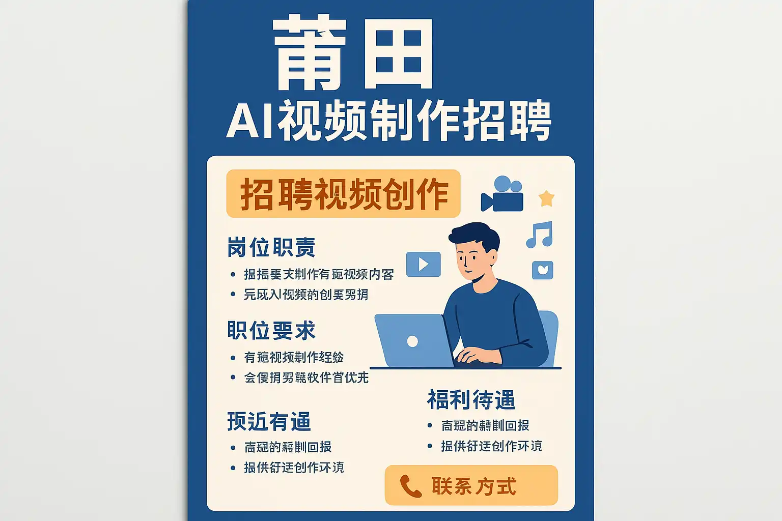 莆田AI视频制作招聘岗位职责详解: