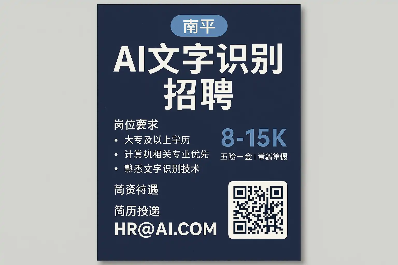 - 结论:在南平找AI文字识别岗位,关键在于“场景对标+可验证作品集+多渠道高频投递+面试标准化输出”。用本地场景Demo证明即战力,能显著缩短面试链路与试用期观察。