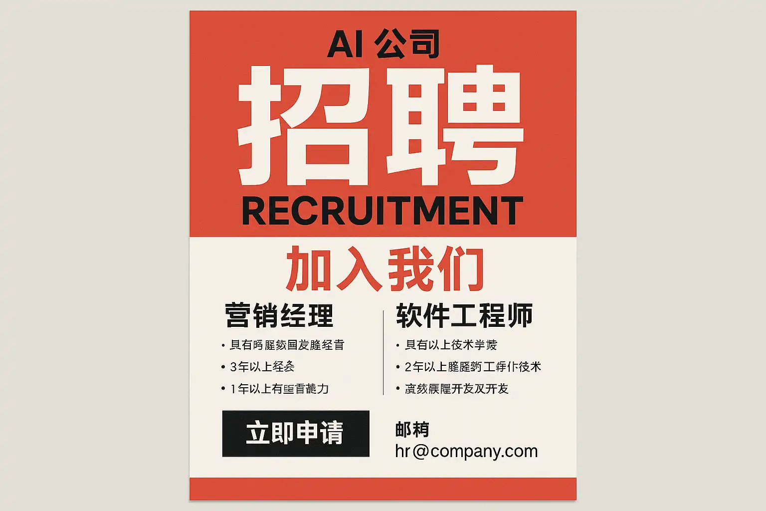 - 结构化要素:职责任务、关键技能(硬/软)、必备条件与优先项、行业/领域限制、薪级与汇报线、排除条件。