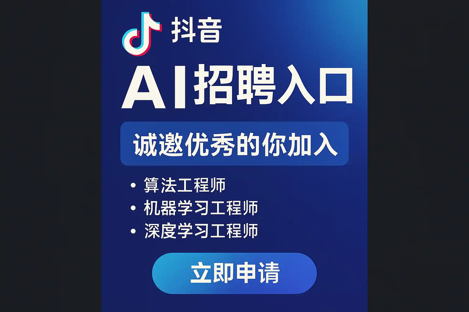 - 关注抖音官方微信公众号,官方会定期推送AI招聘相关信息。