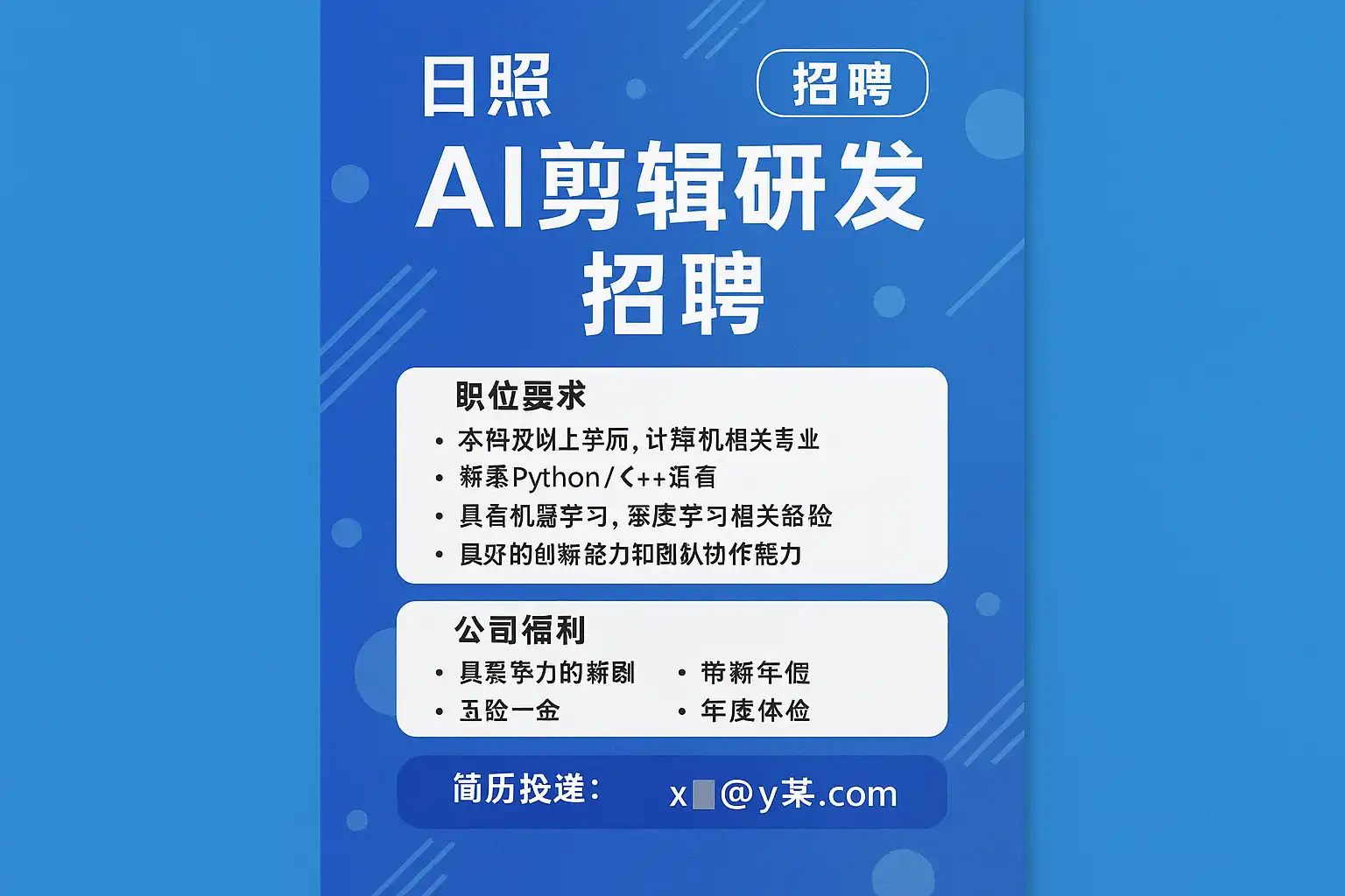 - 专业招聘平台:智联招聘、前程无忧、BOSS直聘等,筛选关键词“日照 AI剪辑 研发”。